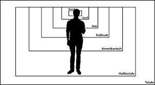 Als erstes kommen wir zu den Einstellungsgrößen. Sie sind dazu da, um das Bild zu begründen und festzulegen, was wesentlich ist. Je nachdem welche Ausschnittsgröße man wählt, verändert sich der Inhalt und die Geschichte des Bildes.