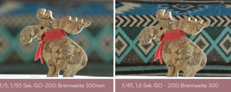 zwischen einer hohen Blendezahl und einer niedrigen. Dieses Beispiel hat mir